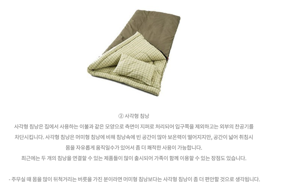 # 7. 사각형 침낭(이불형)