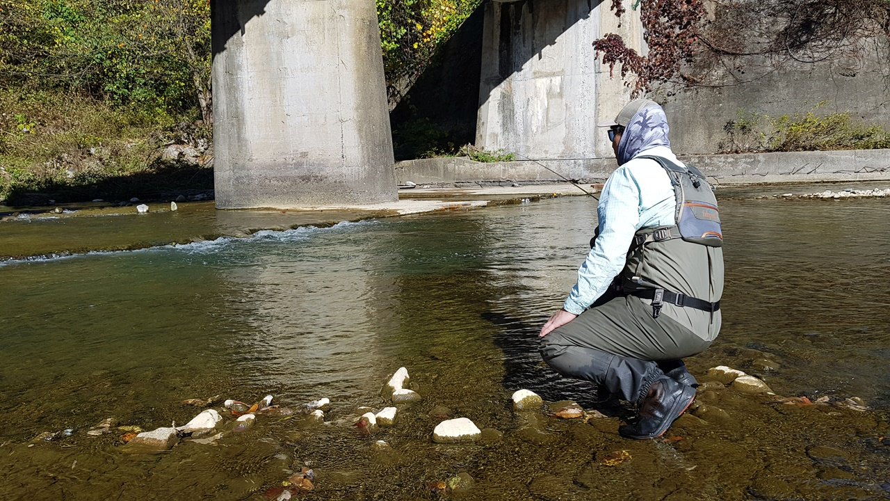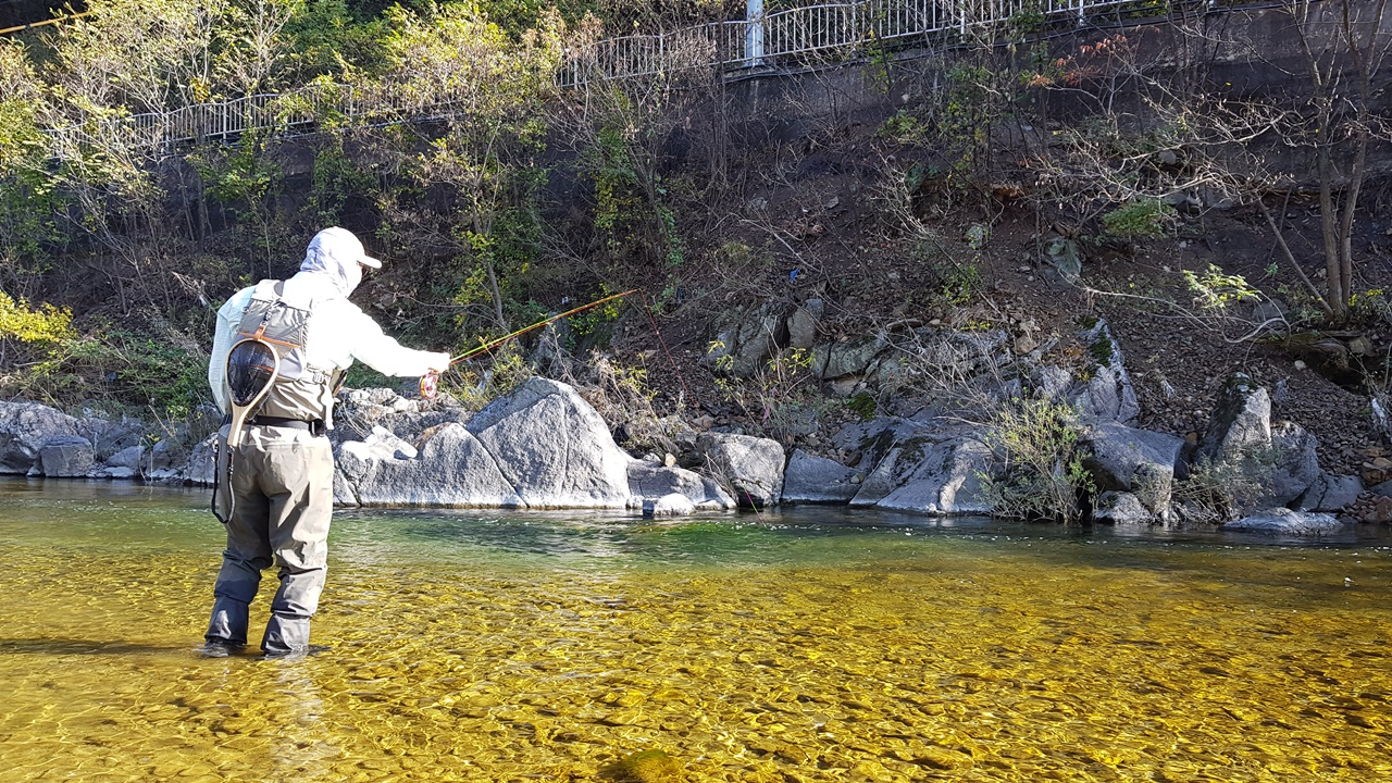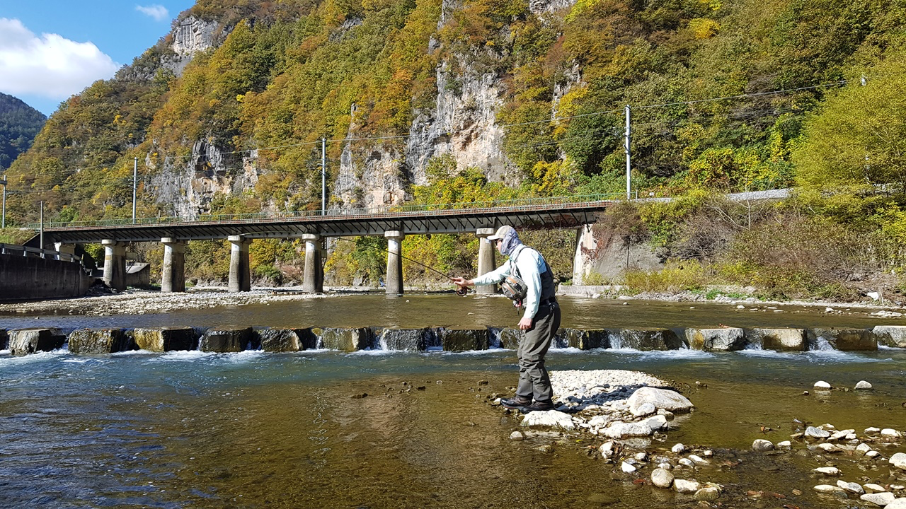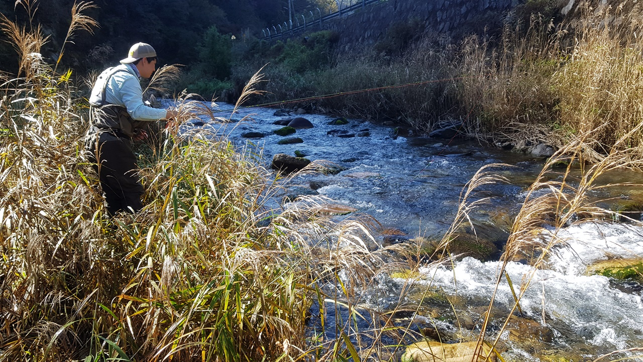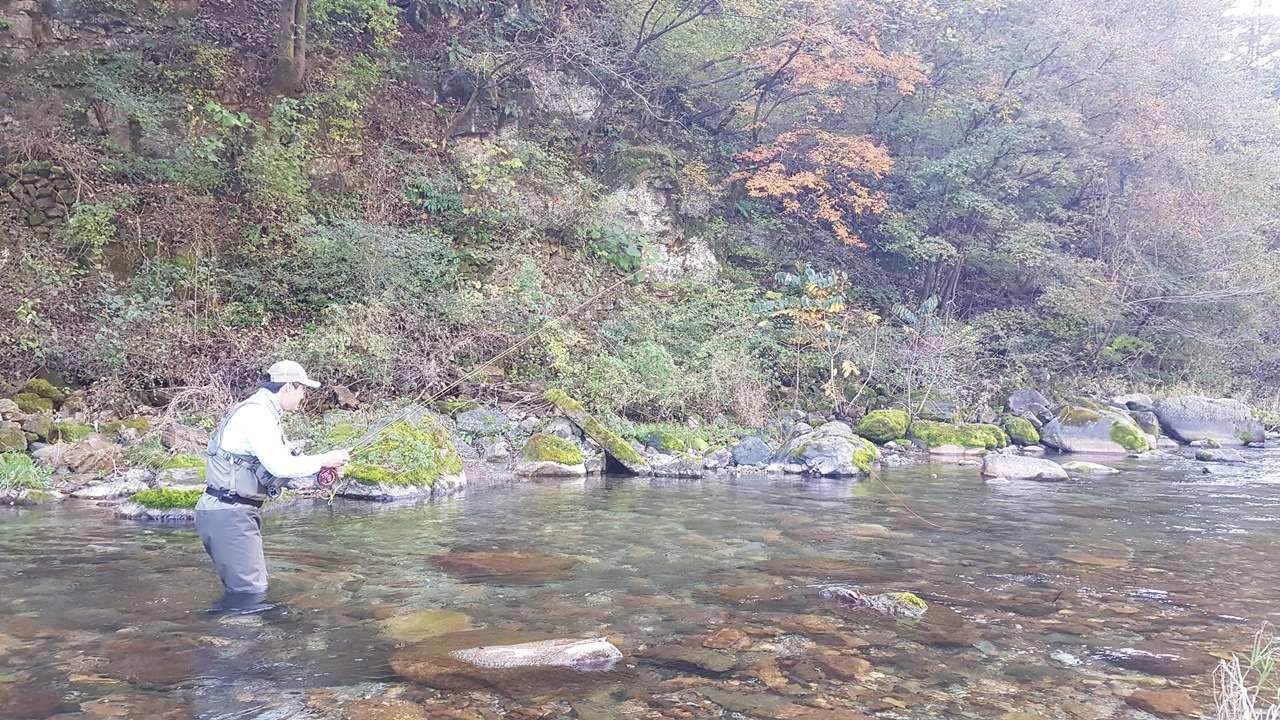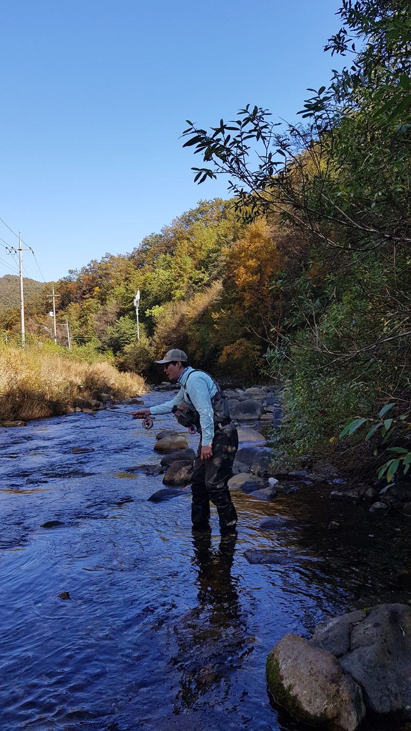 플라이낚시에 성지이기도 한 이곳이 최근에 많은 변화가 생겼는지 송어, 산천어를 찾기가 너무 나도 어려웠습니다.